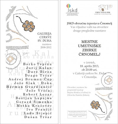 Odprtje razstave bo v četrtek, 18. 4. 2013 ob 20. uri v Galeriji Cerkve Sv. Duha v Črnomlju.