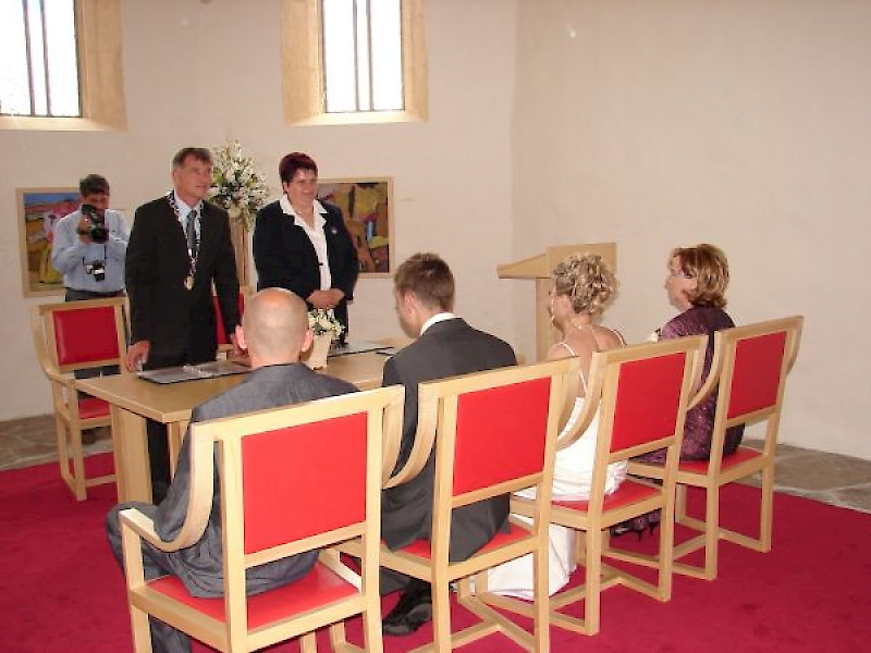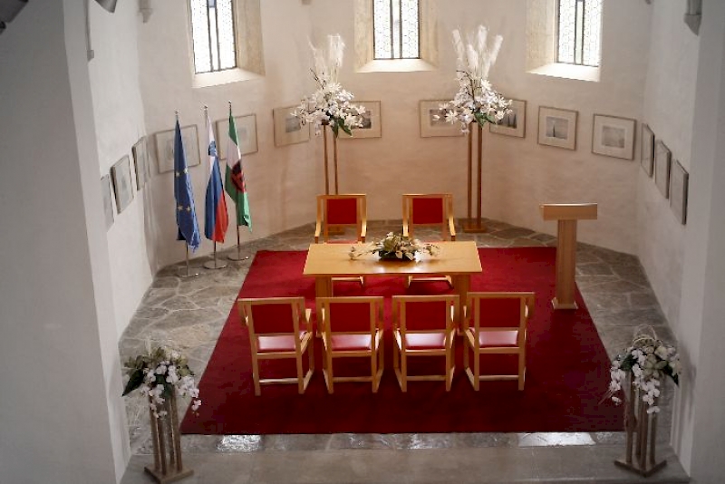 Prostor za potek obreda je prezbiterij cerkve, nekdanji oltarni prostor, ki primerno opremljen in okrašen, skupaj s civilnim obredom ponuja čudovito soglasje nekdanjega jedra cerkvenega prostora in ideje civilne sklenitve zakonske zveze.