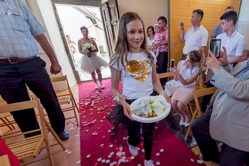 Obred civilne poroke poteka pod vodstvom zapriseženega matičarja, ob spremljavi mladih glasbenikov akademije iz Ljubljane, ki z živo glasbo izkoristijo čudovito akustiko cerkve in pričarajo prav poseben občutek.