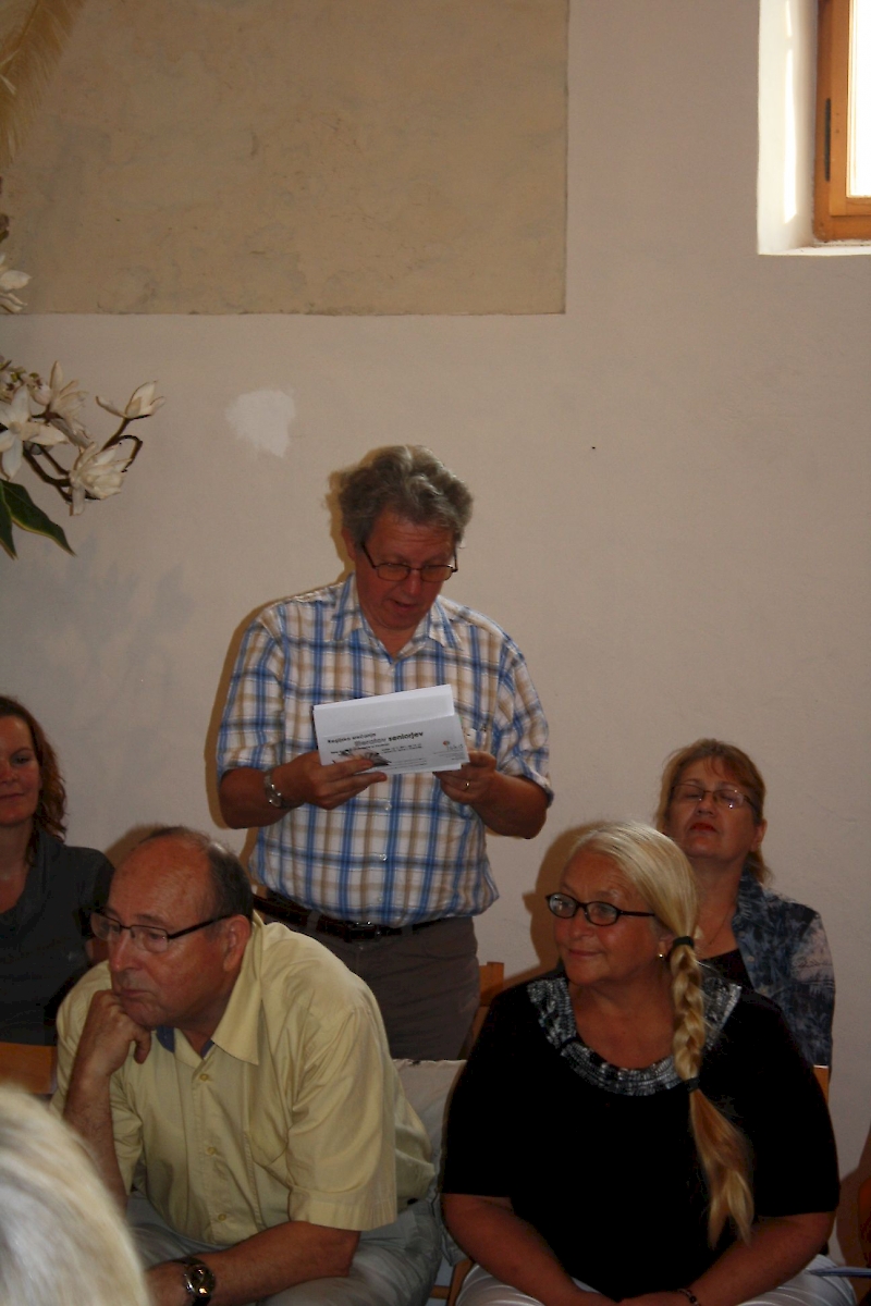 V petek, 16. septembra 2011, so se v cerkvi Sv. Duha zbrali literati seniorji na regijskem srečanju, ki ga je organizirala Območna izpostava JSKD Črnomelj. Na srečanju so bili poleg avtorjev prisotni tudi predstavniki belokranjskih občin, in sicer županja občine Črnomelj, ga. Mojca Čemas Stjepanovič, županja občine Semič, ga. Polona Kambič, podžupan občine Metlika, g. Darko Zevnik, strokovna svetovalka za literaturo pri JSKD, ga. Dragica Breskvar, in nekateri drugi obiskovalci.